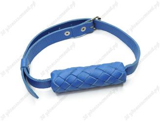 Кожаный кляп валик Молчание синий