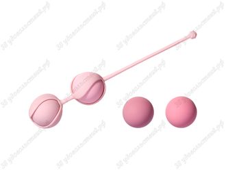 Каждый шарик имеет свой вес: 25гр, 35гр, 44гр и 55гр. Для удобства в использовании они все окрашены в разные оттенки от светлых тонов розового до темных. Шарики 25гр и 35гр имеют смещенный центр тяжести, который будет создавать дополнительную легкую вибрацию во время использования. Шарики весом 44гр и 55гр имеют внутренний утяжелитель.