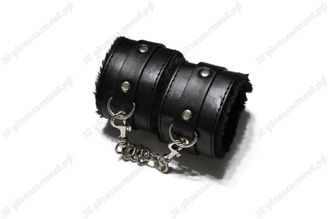 Оковы для рук с мехом и цепочкой на двух карабинах. Обеспечат нежную, но надежную фиксацию партнера.